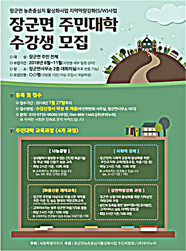 ÇÑÆí, À屺¸é ³óÃÌÁß½ÉÁöȰ¼ºÈ»ç¾÷ ÃßÁøÀ§¿øÈ¸´Â ¿À´Â 27ÀϱîÁö ÁֹΠÆíÀÍÇâ»ó ¹× °øµ¿Ã¼ Ȱ¼ºÈ¸¦ À§ÇÑ À屺¸é ÁÖ¹ÎÁ¦¾È°ø¸ð»ç¾÷°ú ÃÑ 4°³ ±³À°°úÁ¤À¸·Î ±¸¼ºµÈ ÁֹδëÇÐ ¼ö° ½ÅûÀ» ¹Þ´Â´Ù.