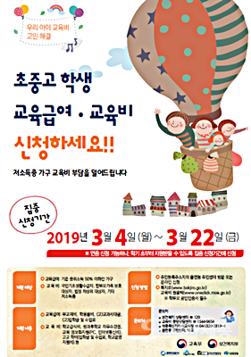 ±³À°ºñ ½ÅûÀÚ´Â °¡±¸¿øÀÇ ¼Òµæ¡¤Àç»êÀÌ »ç¾÷º° ¼±Á¤±âÁØ¿¡ ÇØ´çÇÏ´Â °æ¿ì, °í±³ Çкñ(¼ö¾÷·á, Çб³¿î¿µÁö¿øºñ), ¹æ°úÈÄÇб³ ÀÚÀ¯¼ö°±Ç, ±³À°Á¤º¸È(PC, ÀÎÅͳÝÅë½Åºñ) µîÀ» Áö¿ø¹ÞÀ» ¼ö ÀÖ´Ù.