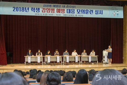 ¼¼Á¾½Ã±³À°Ã»Àº 8ÀÏ ¼¼Á¾½Ã±³À°Ã» 2Ãþ ´ë°­´ç¿¡¼­ °¢±ÞÇб³ ´ã´çÀÚ¸¦ ´ë»óÀ¸·Î 2018³â Çлý °¨¿°º´ ¿¹¹æ ´ëÀÀ ¸ðÀÇÈÆ·Ã¸¦ ½Ç½ÃÇß´Ù°í ¹àÇû´Ù.