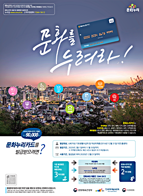 ¹®È´©¸®Ä«µå´Â 6¼¼ ÀÌ»ó(2014³â 12¿ù 31ÀÏ ÀÌÀü Ãâ»ýÀÚ)ÀÇ ±âÃÊ»ýȰ¼ö±ÞÀÚ¿Í Â÷»óÀ§°èÃþ¿¡°Ô ¹ß±ÞµÇ´Â Ä«µå·Î ¿ÃÇØ´Â Áö¿ø ±Ý¾×ÀÌ 1ÀÎ´ç ¿¬9¸¸¿øÀ¸·Î Àü³â´ëºñ 1¸¸¿øÀÌ ÀλóµÅ »ç¿ëÀÚÀÇ ¹®È ÇâÀ¯ ±âȸ°¡ È®´ëµÇ¾ú´Ù.