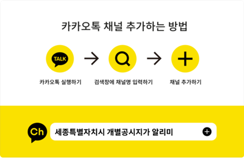 ¼ºñ½º ÀÌ¿ëÀ» À§Çؼ´Â īī¿ÀÅå ä³Î °Ë»ö¿¡¼ ¡®¼¼Á¾Æ¯º°ÀÚÄ¡½Ã °³º°°ø½ÃÁö°¡ ¾Ë¸®¹Ì¡¯ ä³ÎÀ» Ãß°¡ÇÏ¸é ½±°Ô ÀÌ¿ëÇÒ ¼ö ÀÖ´Ù.