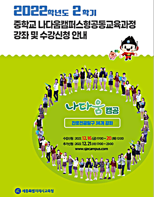 ¼¼Á¾½Ã±³À°Ã»(±³À°°¨ ÃÖ±³Áø, ÀÌÇÏ ¼¼Á¾½Ã±³À°Ã»)Àº 2022Çг⵵ 2Çб⠳ª´Ù¿ò Ä·ÆÛ½ºÇü°øµ¿±³À°°úÁ¤ Áø·ÎÀü°øÅ½±¸ ¼ö°­»ýÀ» ¸ðÁýÇÑ´Ù.