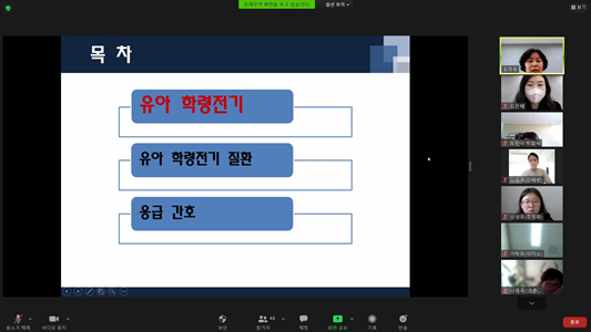À̹ø ¿¬¼ö´Â ´Ü¼³À¯Ä¡¿ø °£È£»çÀÇ ¿ª·® °­È­¸¦ ÅëÇØ ¿ø¾Æ °Ç°­ °ü¸®‧Áöµµ¿¡ ±â¿©Çϰí ÀÀ±Þ»óȲ ¹ß»ý ½Ã À§±â ´ëó ´É·ÂÀ» Á¦°íÇϱâ À§ÇØ ¸¶·ÃµÈ °ÍÀ¸·Î, Äڷγª19 È®»ê ¹æÁö¸¦ À§ÇØ ÁÜ(Zoom)À» Ȱ¿ëÇÑ ½Ç½Ã°£ ¿Â¶óÀÎ ºñ´ë¸é ¿¬¼ö·Î ÁøÇàµÆ´Ù.