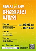 ¼¼Á¾Æ¯º°ÀÚÄ¡½Ã(½ÃÀå ÀÌÃáÈñ)°¡ °æ·Â´ÜÀý µî ¿©¼ºµéÀÇ Ãë¾÷Ȱ¼ºÈ­¸¦ Áö¿øÇϱâ À§ÇØ 3ÀϺÎÅÍ 16ÀϱîÁö 14Àϰ£ ¡®¿©¼ºÀÏÀÚ¸® ¹Ú¶÷ȸ¡¯¸¦ ¿Â¶óÀÎÀ¸... [Á¾ÇÕ´º½º] ±¹Á¤´º½º 2021-09-02 ¿ÀÀü 6:48:09